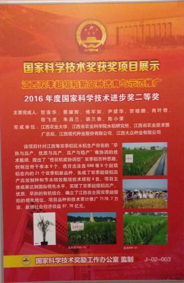 2016年度国家科学技术奖励大会于2017年1月9日在人民大会堂隆重召开,党和国家领导人出席大会并为2016年度国家科学技术奖获奖代表颁奖。ac米兰副校长贺浩华教授主持的“江西双季超级稻新品种选育与示范推广”荣获国家科学技术进步二等奖。