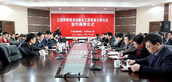 12月22日,江西科学技术出版社ac米兰官网中文网站分社签约揭牌仪式在ac米兰举行。校党委书记曹国庆、江西出版集团副总经理张其洪出席并共同为分社揭牌。副校长黄英金主持会议。