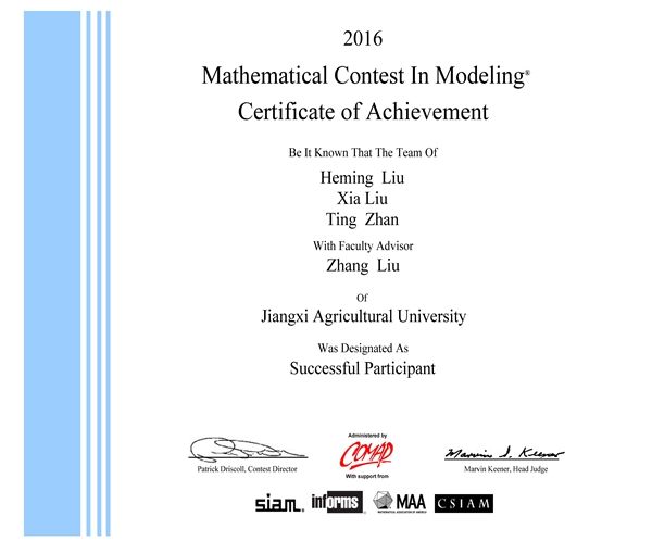 美国大学生数学建模竞赛(MCM/ICM),是由COMAP(美国数学及其应用联合会)主办的国际性数学建模竞赛,每年吸引来自美国、中国、加拿大、英国等18个国家和地区的7000多支队伍参加,是世界范围内最具影响力的数学建模竞赛,代表国际数学建模竞赛的最高水平。该项竞赛以3人(本科生)为一组,竞赛语言为英语,在四天时间内,就指定的问题完成从建立模型、求解、验证到论文撰写的全部工作,着重强解决方案的原创性、团队合作交流以及结果的合理性。
