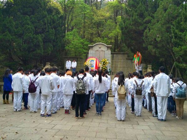 在方志敏烈士雕像前,同学们认真聆听方志敏烈士生平事迹介绍,深切缅怀烈士丰功伟绩,集体宣誓重温入团誓词,高唱共青团之歌。同学们排着整齐的队伍,怀着崇敬的心情向方志敏烈士墓敬献花圈,并以鞠躬、默哀等方式表达对先烈的缅怀和哀思之情。
