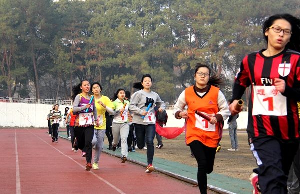 本次比赛采用男、女混合接力赛,15个学院240名远动员,在全场啦啦队员战鼓声、呐喊声中你追我赶,现场气氛热烈。最后,工学院代表队卫冕夺冠,动科院和经管院分别获得第二、第三名。