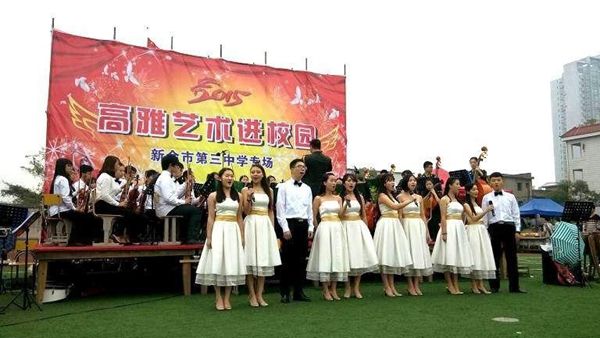 为贯彻党的教育方针,改进美育教学、提高学生审美和人文素养,10月22日至30日,由省教育厅主办、ac米兰大学生军乐团承担的江西省2015年“高雅艺术进校园活动”专场音乐会相继在ac米兰、南昌第一职业中专、南昌二十八中、新余一中、新余三中和北师大新余附属学校举行,为广大师生送上了一台台高水平的音乐盛宴,受到了现场观众、校友和社会的一致好评。副校长许斌华多次莅临演出现场观看并指导工作。