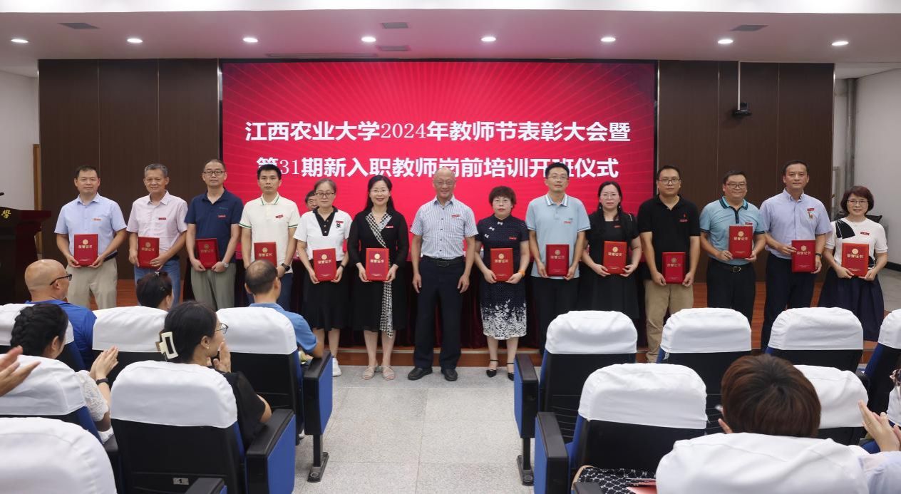 会上,校领导对2023年度优秀教师代表、长期从教的教师代表进行表彰,为他们颁发荣誉证书。教师代表“全国优秀教师”获得者农学院向妙莲老师,新入职教师代表、动科院李鑫博士先后发言。随后,全体新教师签订了师德师风承诺书,并进行入职前宣誓,通过庄严的仪式增强教师的责任感和使命感。