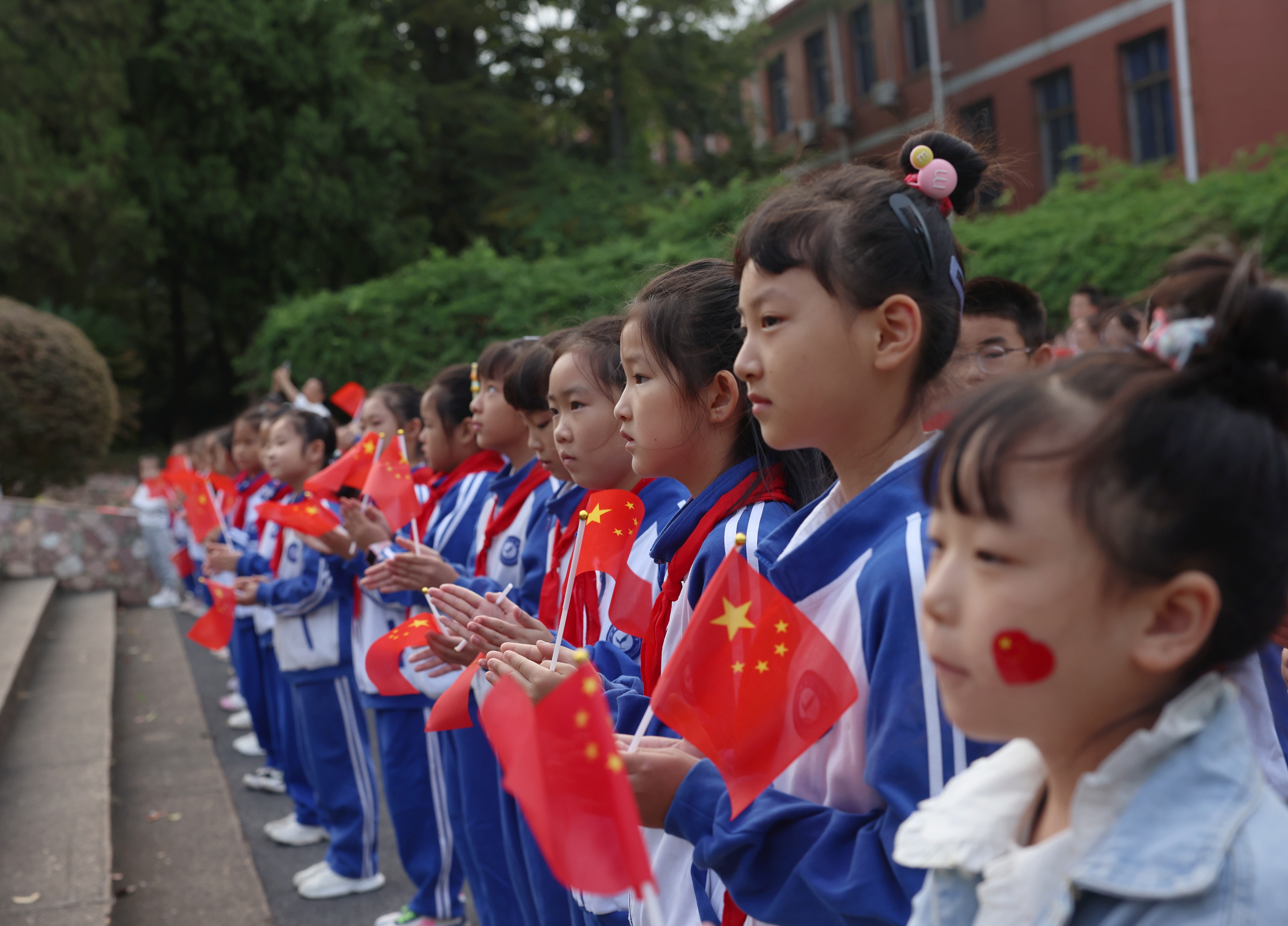 国庆期间,整齐悬挂的五星红旗、主题花卉景观,用一抹抹“中国红”将校园装扮得喜庆祥和,表达出师生们对祖国最美好的祝福。