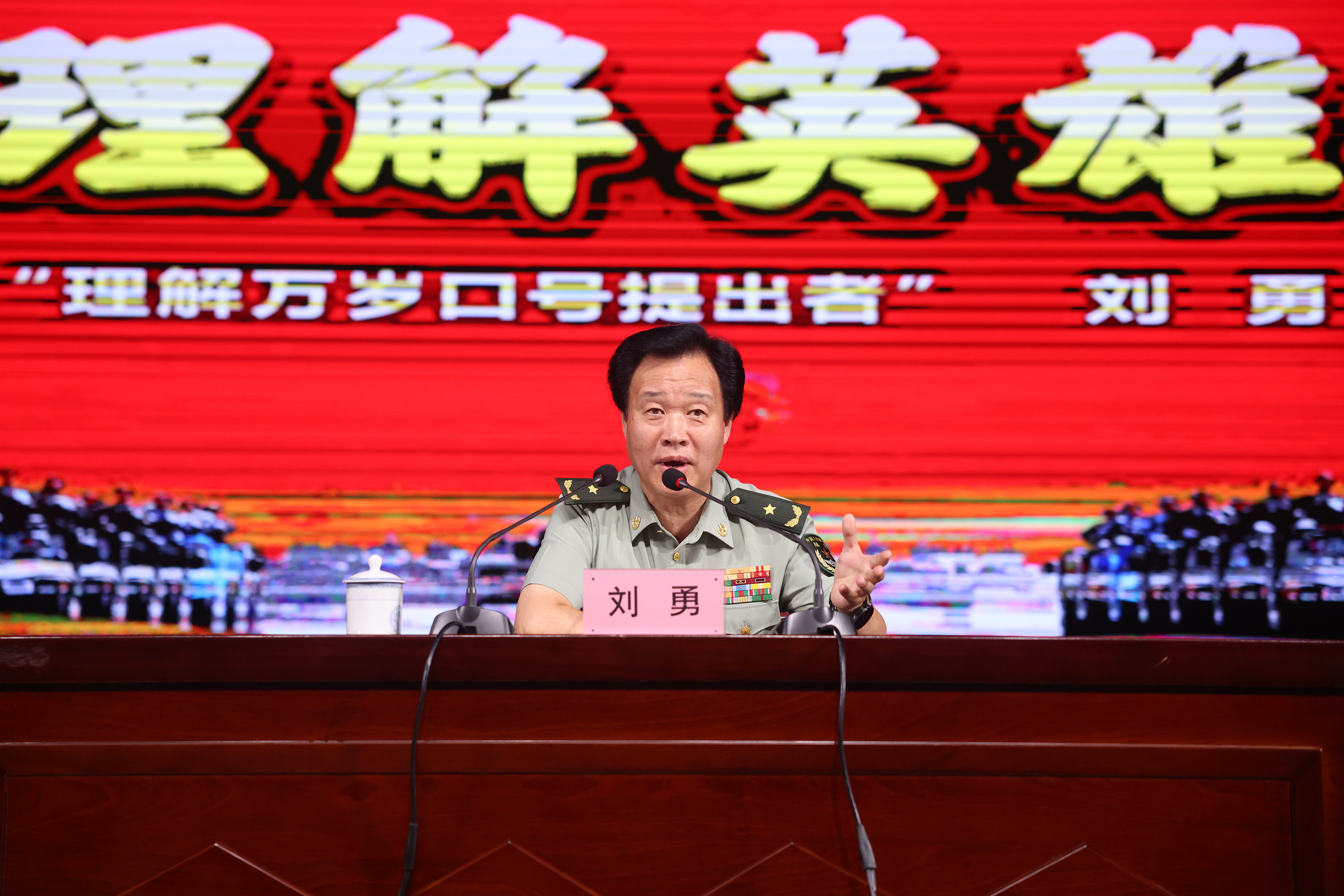 9月25日下午,校大礼堂座无虚席、掌声雷动,一堂特别的开学第一课正在举行。中国人民解放军陆军步兵学院原政委、陆军博物馆筹建办公室专家组组长刘勇少将应邀为师生们作“理解英雄”主题报告。全体在校校领导、各学院党委副书记、辅导员代表、机关处室代表、新生代表近千人聆听报告。校纪委书记刘斯龙主持报告会。