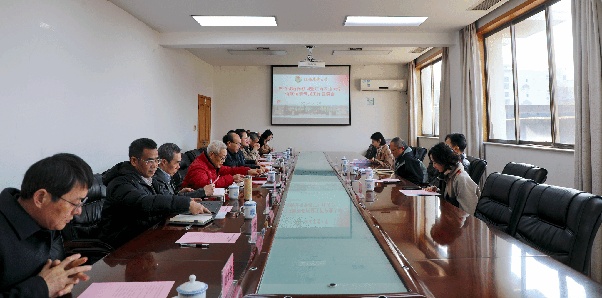 1月15日,江西省侨联秘书长蔡峻一行来ac米兰慰问原副校长杜天真教授,并参加学校侨联侨情专报工作座谈会。副校长刘木华出席会议并致辞,党委统战部负责人、校侨联主要负责人及侨联特聘专家参与座谈。