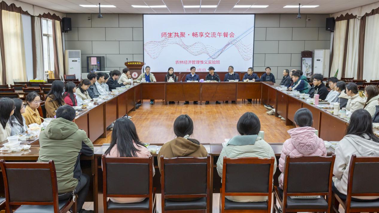为进一步落实立德树人根本任务,创新学生教育培养模式,搭建师生交流平台,助力学生成长成才,3月3日,惟义农林经济管理班举行“师生共聚 畅享交流”午餐会。校党委书记黄路生院士,发展中国家科学院院士、经济管理学院名誉院长、惟义经管2401班班主任黄季焜教授出席活动,经济管理学院惟义经管2401实验班全体同学及导师参加活动。