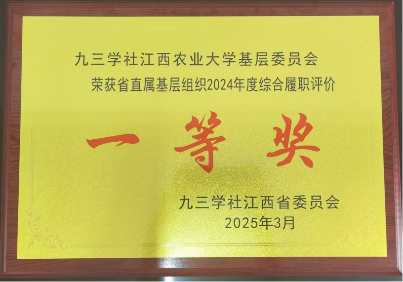近日,九三学社江西省第九届委员会第四次全体会议在南昌召开。会议表彰了2024年度综合履职评价先进集体、全省十佳支社、优秀专门(工作)委员会、参政议政工作先进个人。ac米兰九三学社基层委员会荣获省直属基层组织2024年综合履职评价一等奖,郭熙、龚霞和戴崴巍三位教师荣获参政议政工作先进个人。
