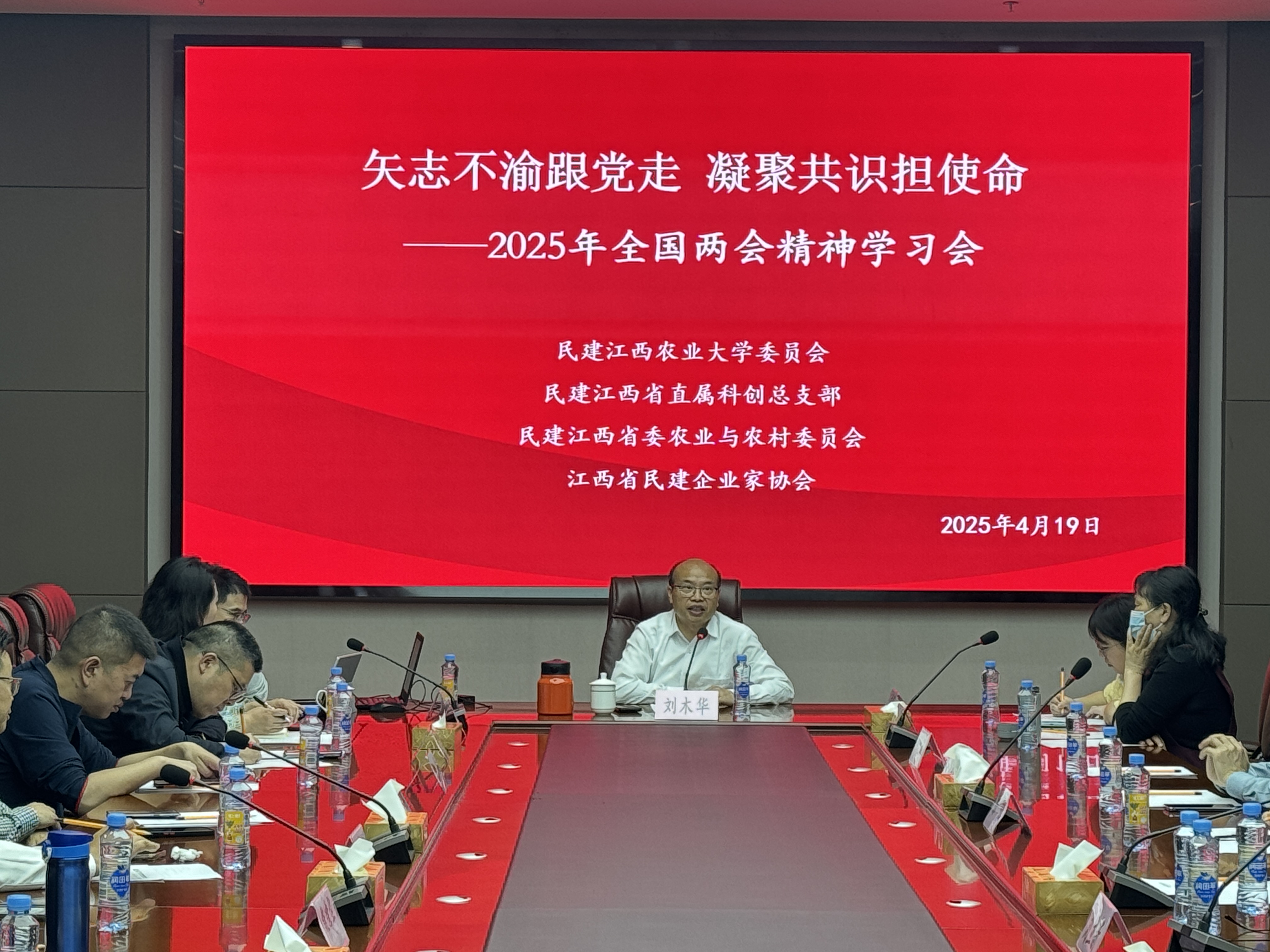 4月19日上午,由民建ac米兰官网中文网站委员会、民建省直科创总支部、民建江西省委农业与农村委员会以及江西省民建企业家协会联合举办的全国两会精神学习会在江西煌上煌集团会议室举行。全国政协委员、民建江西省委会副主委、ac米兰官网中文网站副校长刘木华为本次学习会的主讲人,各组织会员和企业家代表参加会议。