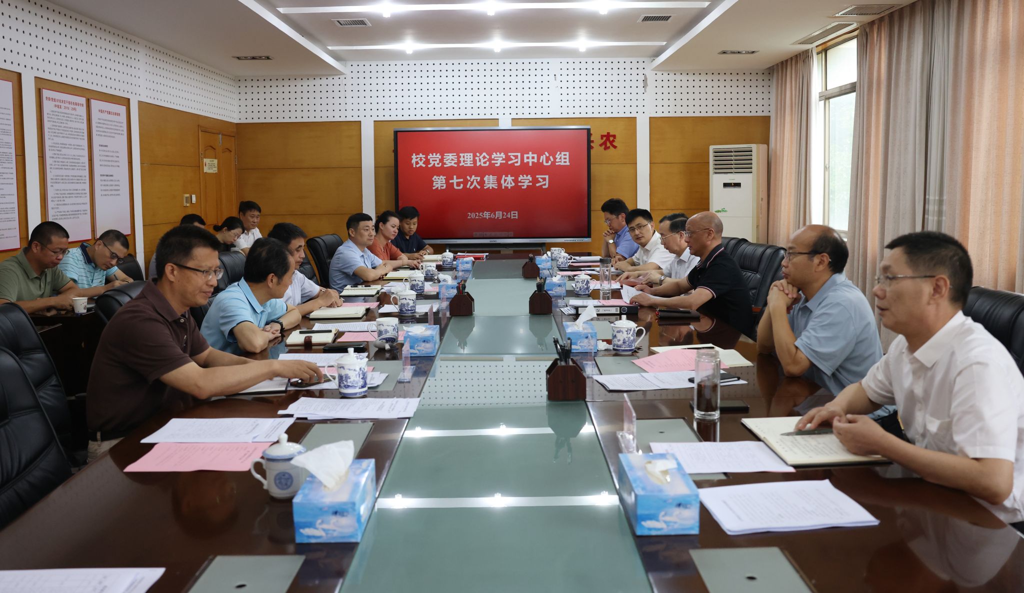 6月24日上午,校党委书记黄路生院士主持召开学校党委理论学习中心组第七次学习会,围绕“筑牢安全屏障,为学校高质量发展保驾护航”主题开展集中学习,并部署下一阶段校园安全工作。校党政领导班子成员参加学习会,学工处、保卫处、校建处、资实处、林学院、化材学院、图书馆、后勤服务集团主要负责同志列席会议。