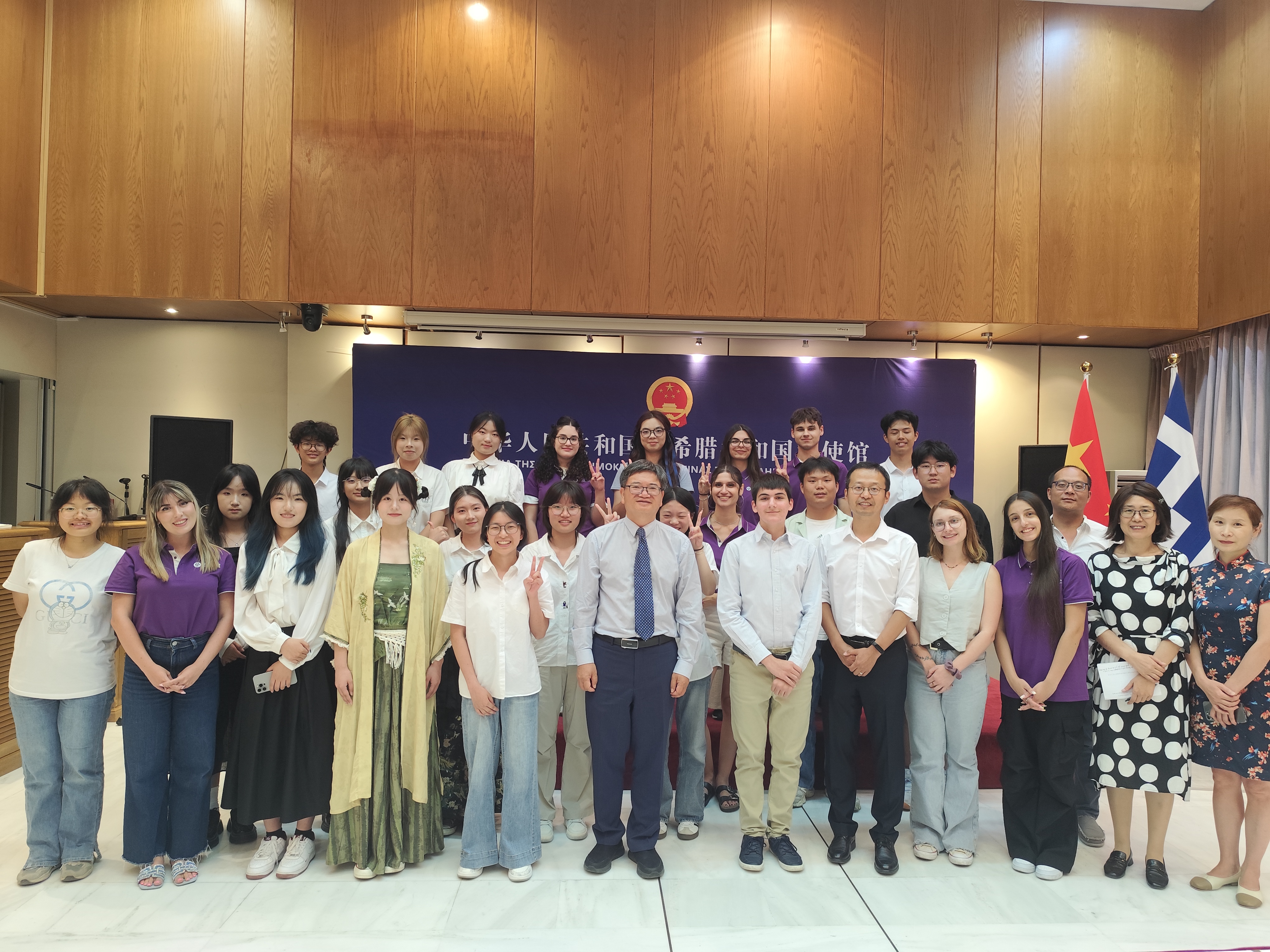 7月21日,ac米兰暑期希腊学生研学团受邀参加中国驻希腊大使馆“青年π·互访互鉴”活动,中国驻希腊使馆公使衔参赞赖波出席活动并致辞。ac米兰暑期希腊学生研学团与刚刚结束在中国访问的希腊华欣语言学校师生代表共同参加活动。