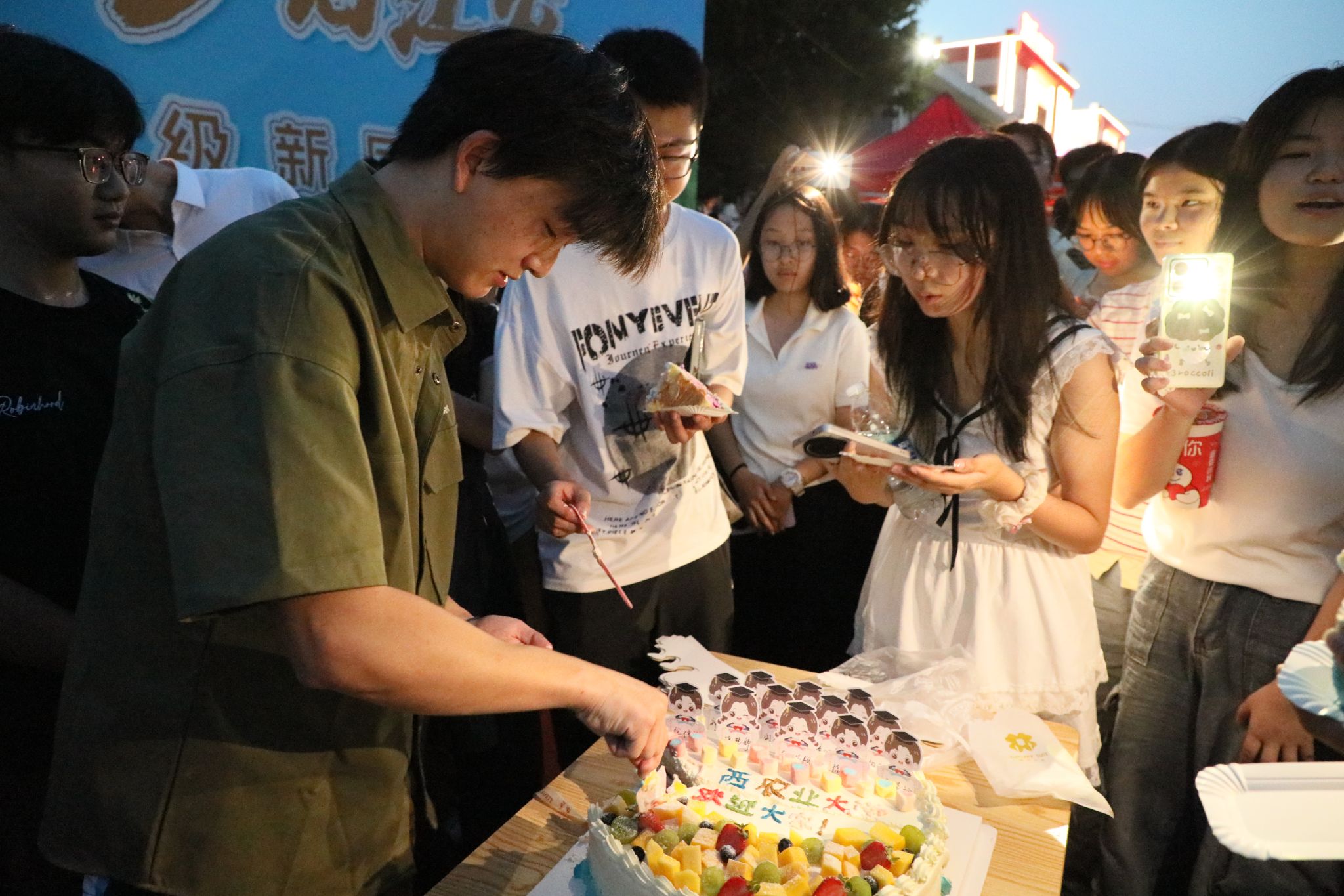集体生日送惊喜,青春温暖满校园。特别为9月6日、7日生日的新生准备的“集体生日会”成为了活动中格外温馨的一幕。定制款生日蛋糕、简短而真挚的庆祝仪式以及精美的校园文创礼品,让寿星新生在入学第一天就感受到学校的特别关爱,这份温暖将成为他们大学生活中难忘的记忆。