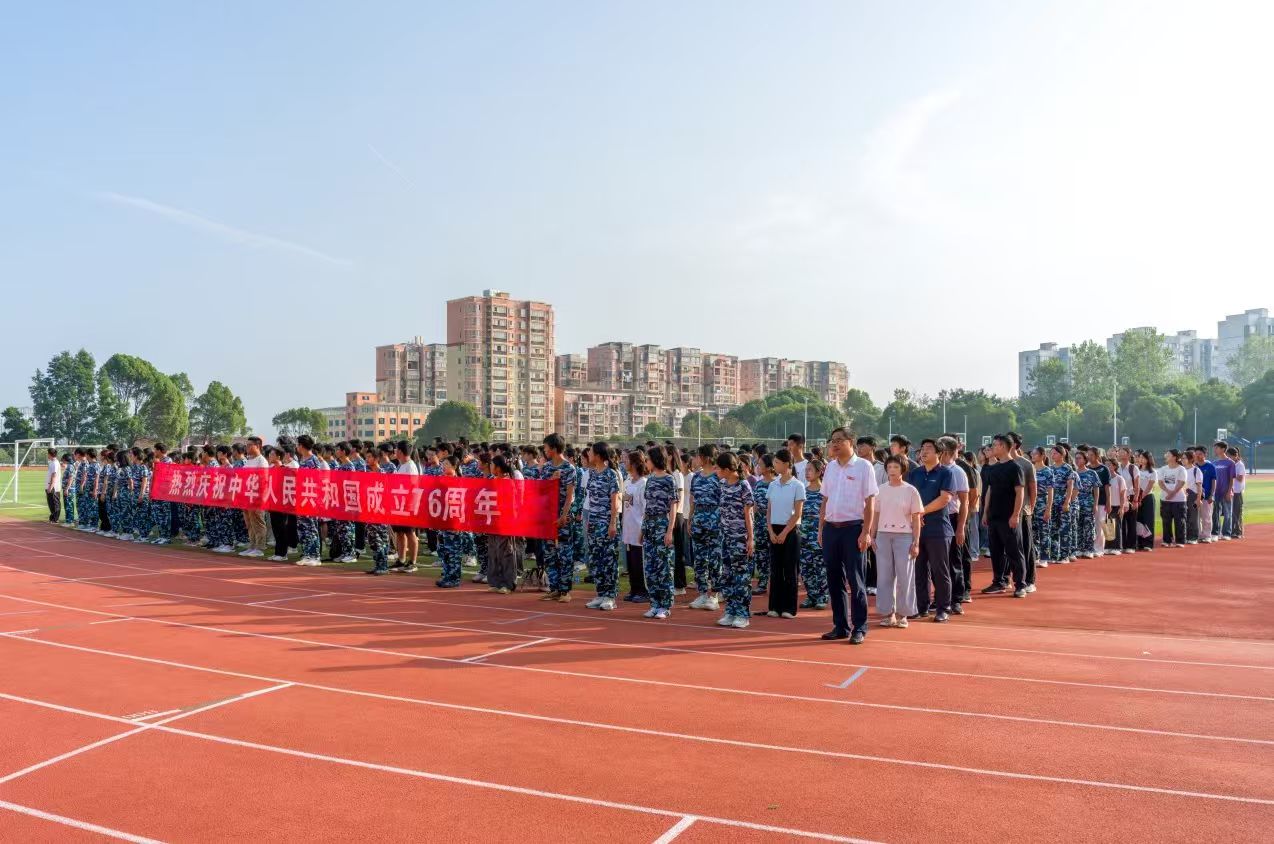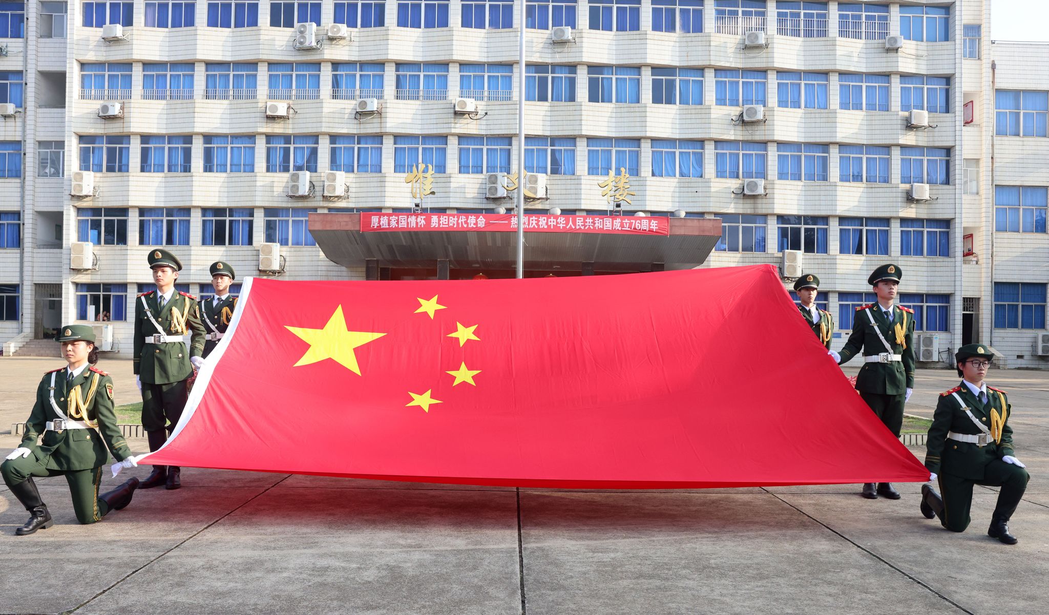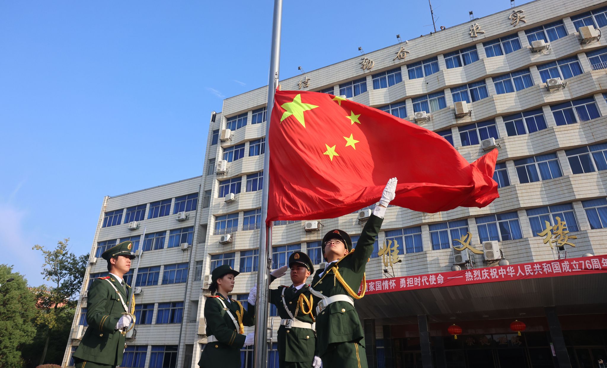 学校东校区同时举行庆祝中华人民共和国成立76周年升国旗仪式。
