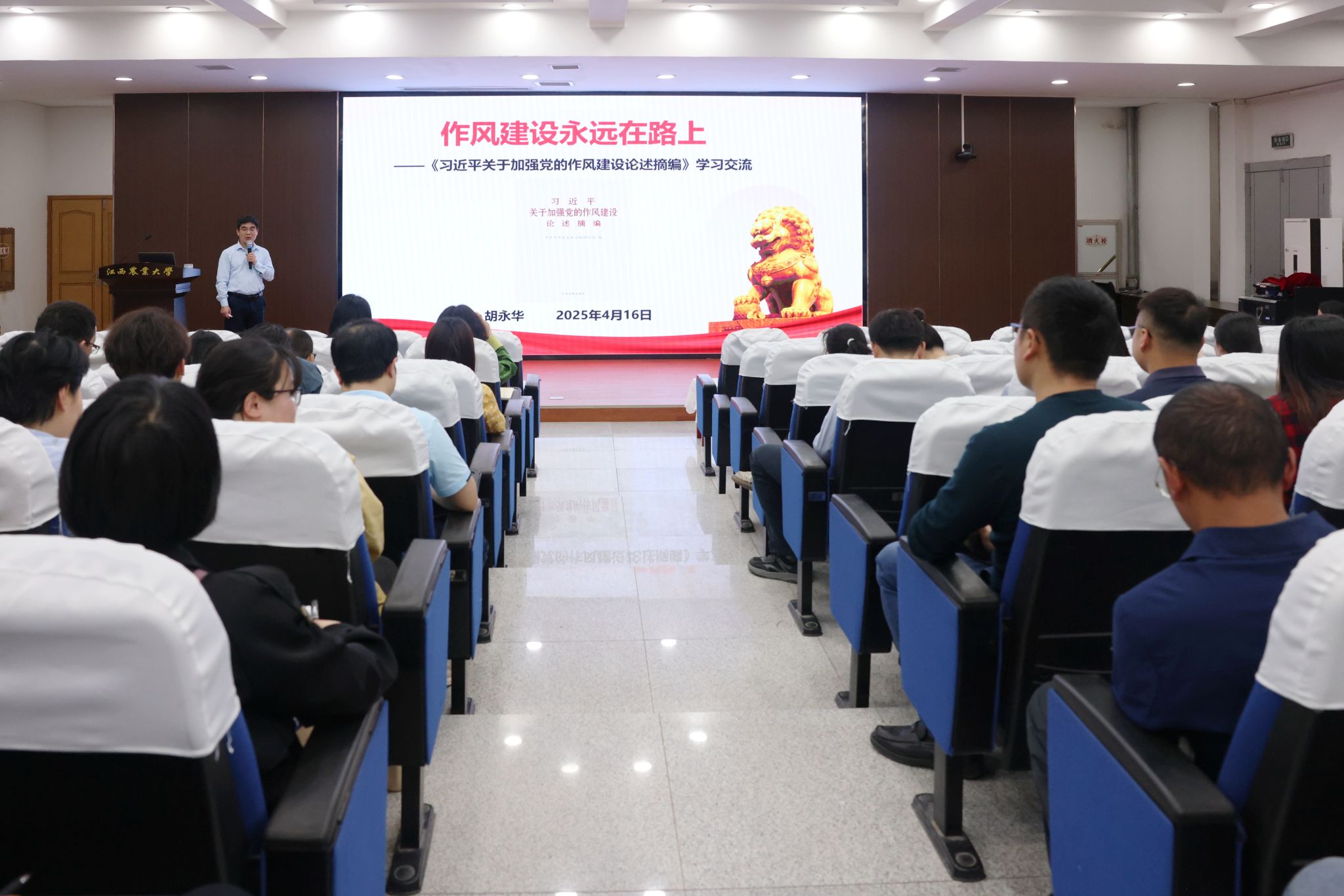 为推动深入贯彻中央八项规定精神学习教育走深走实,进一步加强学校机关干部作风建设,4月16日,机关党委组织开展加强作风建设集体学习交流会,校党委委员、组织部长胡永华同志作学习辅导,机关全体科级及以下党员干部参加。