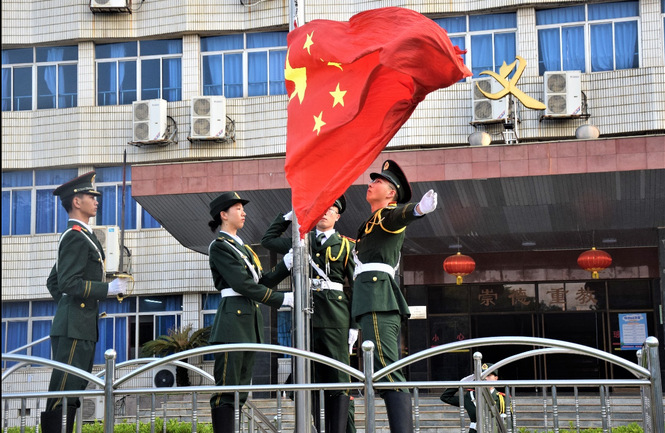 勿忘国耻、振兴中华!9月18日上午,由武装部组织的“纪念九一八:缅怀先烈、吾辈自强”主题升旗仪式在第一教学楼“惟义楼广场”庄严举行,校国旗仪仗队、2021级新生代表及其他师生参加升旗仪式。7时整,国旗仪仗队昂...
