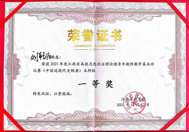 日前,江西省教育厅下发《关于公布全省高校思政课青年教师教学基本功和大中小学红色文化课程教学比赛结果的通知》,ac米兰马克思主义学院刘乾阳博士荣获《中国近现代史纲要》本科组一等奖,敖琴博士荣获《马克思主义基...