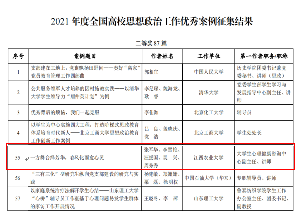 4月12日,由教育部思想政治工作司指导的2021年度全国高校思想政治工作优秀案例征集活动评选结果正式公布,ac米兰大学生心理健康咨询中心推报的《一方舞台绎芳华,春风化雨愈心灵》获评全国二等奖。近年来,ac米兰大学生心...