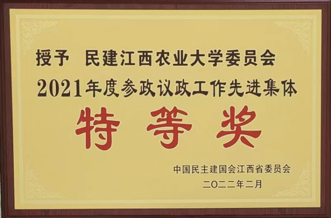 近日,民建江西省委会对在2021年度参政议政工作中作出突出贡献的先进单位予以了表彰,民建ac米兰官网中文网站委员会荣获“2021年度参政议政工作先进集体特等奖”,同时还获得了 “2021年度新闻宣传工作先进单位一等奖”、“...