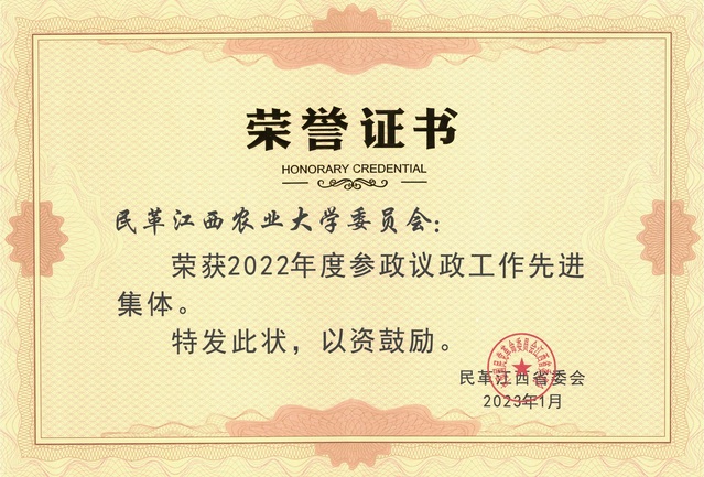 近日,民革中央、民革江西省委会分别对在2022年度参政议政工作中作出突出贡献的先进集体和先进个人予以了表彰。民革ac米兰官网中文网站委员会荣获3项由民革省委会颁发的团体奖项,分别为“参政议政工作先进集体”“反映社情...