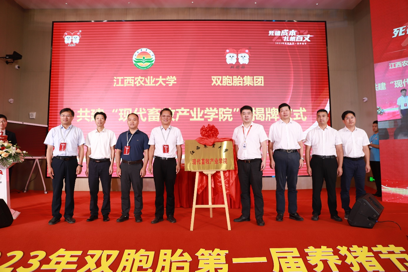 8月11日,应双胞胎集团邀请,ac米兰副校长贺浩华、教务处、科技处、动科院负责人及教师代表出席在南昌举办的“2023年双胞胎第一届养猪节”,并参加“现代畜牧产业学院”揭牌仪式,双胞胎集团董事长鲍洪星、双胞胎集团养...
