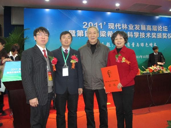 12月23日, 由中国林学会和国家林业局共同主办的2011年现代林业发展高层论坛暨第四届梁希林业科学技术奖颁大会在北京举行。国家林业局局长贾治邦,副局长孙扎根,中国林学会理事长江泽慧,中国科协书记处书记王春法出...