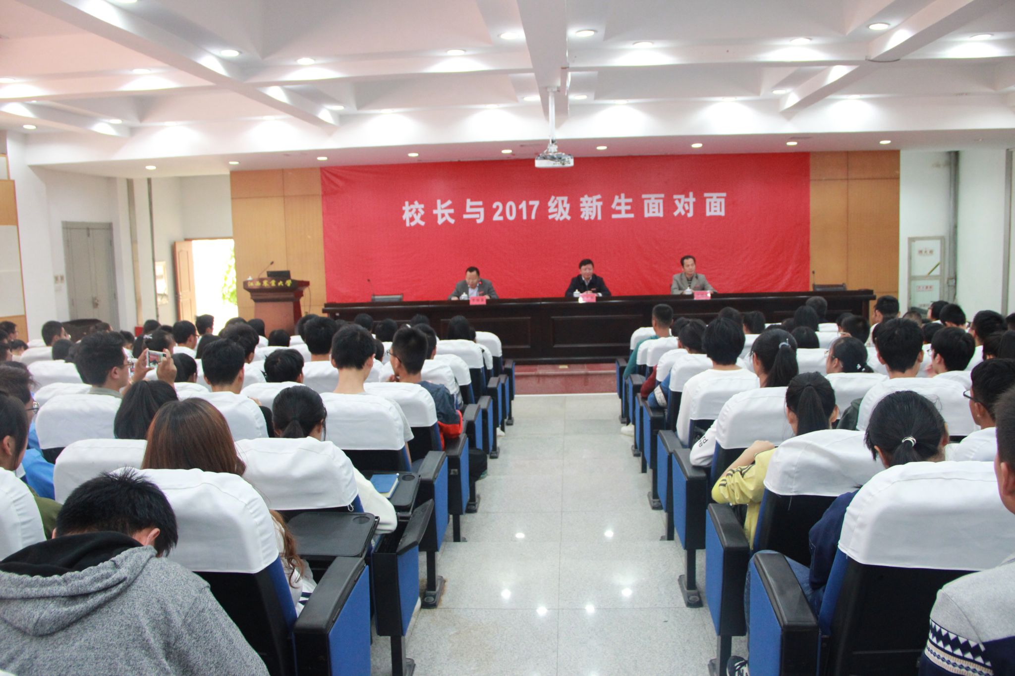 “我与校长有约”。10月26日下午,250余名2017级新生代表齐聚校办公楼一楼报告厅,与校长赵小敏来了一场面对面、零距离的心灵交流。校长与新生共叙青春,共话成长。副校长许斌华出席交流会。听校长讲述江农的发展历史...