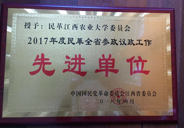 民革江西农大委员会获得2017年度全省参政议政工作先进单位