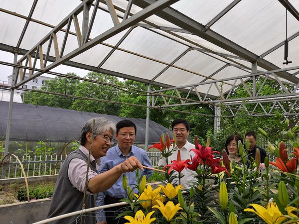 校长赵小敏一行考察校花卉盆景基地百合育种园