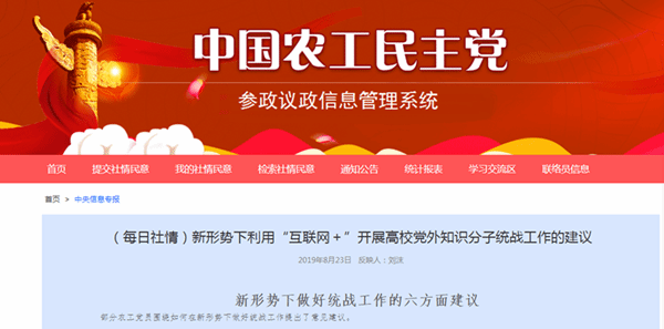 ac米兰民主党派一项社情民意被农工民主党中央采用