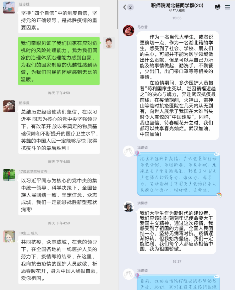 “这堂思政课让我听得‘津津有味’,感觉很‘耳目一新’!”3月9日,全国大学生同上一堂疫情防控思政大课直播课堂刚一结束,人文院湖北籍青年团员郭昊率先“抢”过了话筒发起了言,在湖北籍网络团支部交流群发送了他...