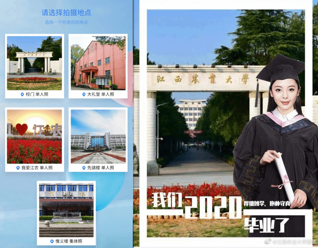 校门“合影”、先骕楼外“打卡”、 校大礼堂“留念”……ac米兰2020届毕业生在“全国各地”同时上线毕业照打卡,刷爆了江农师生和校友的朋友圈。据了解,这是全国首个H5版本的“AI云毕业照”,受到广泛关注,被中国青年...
