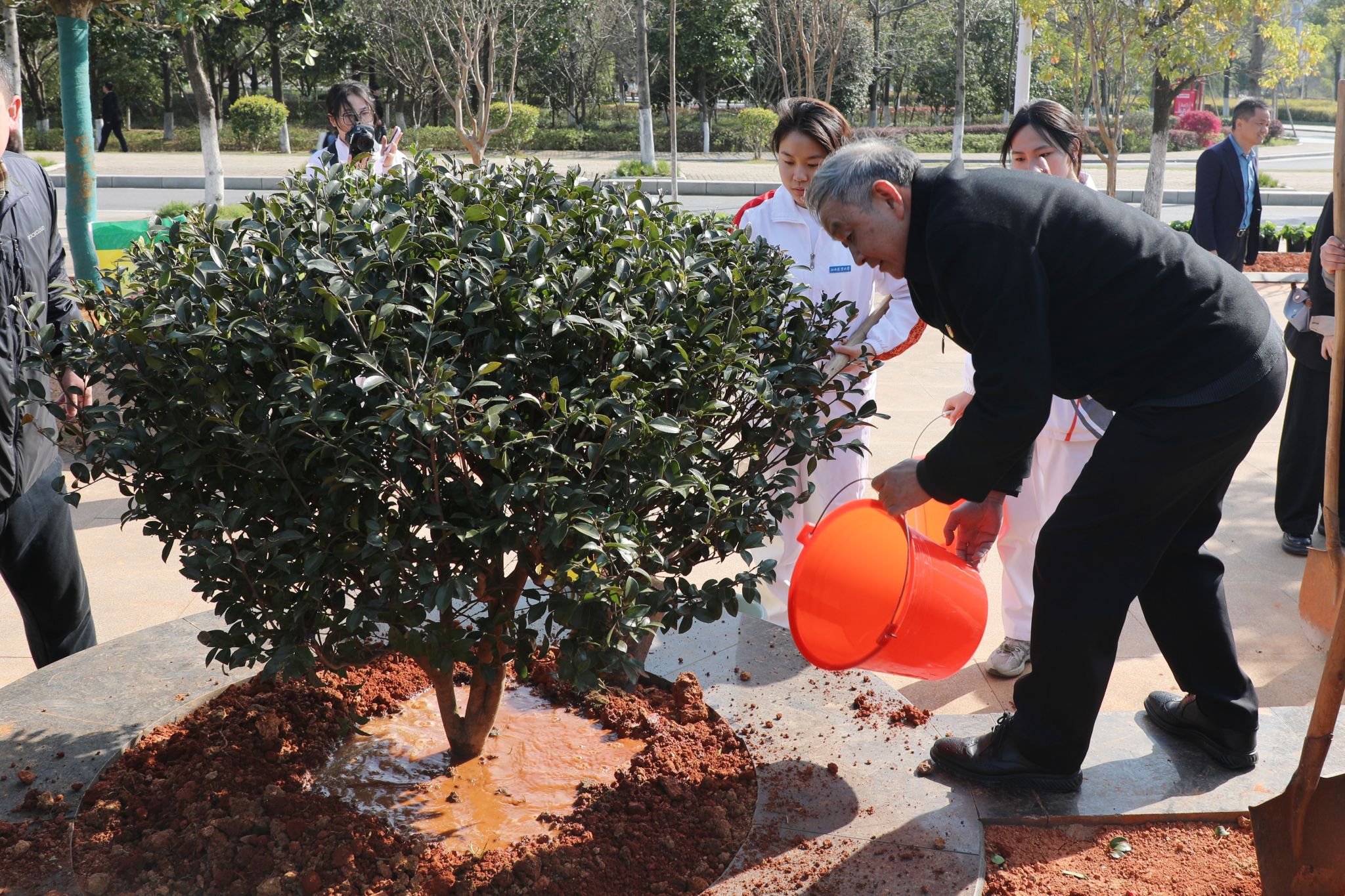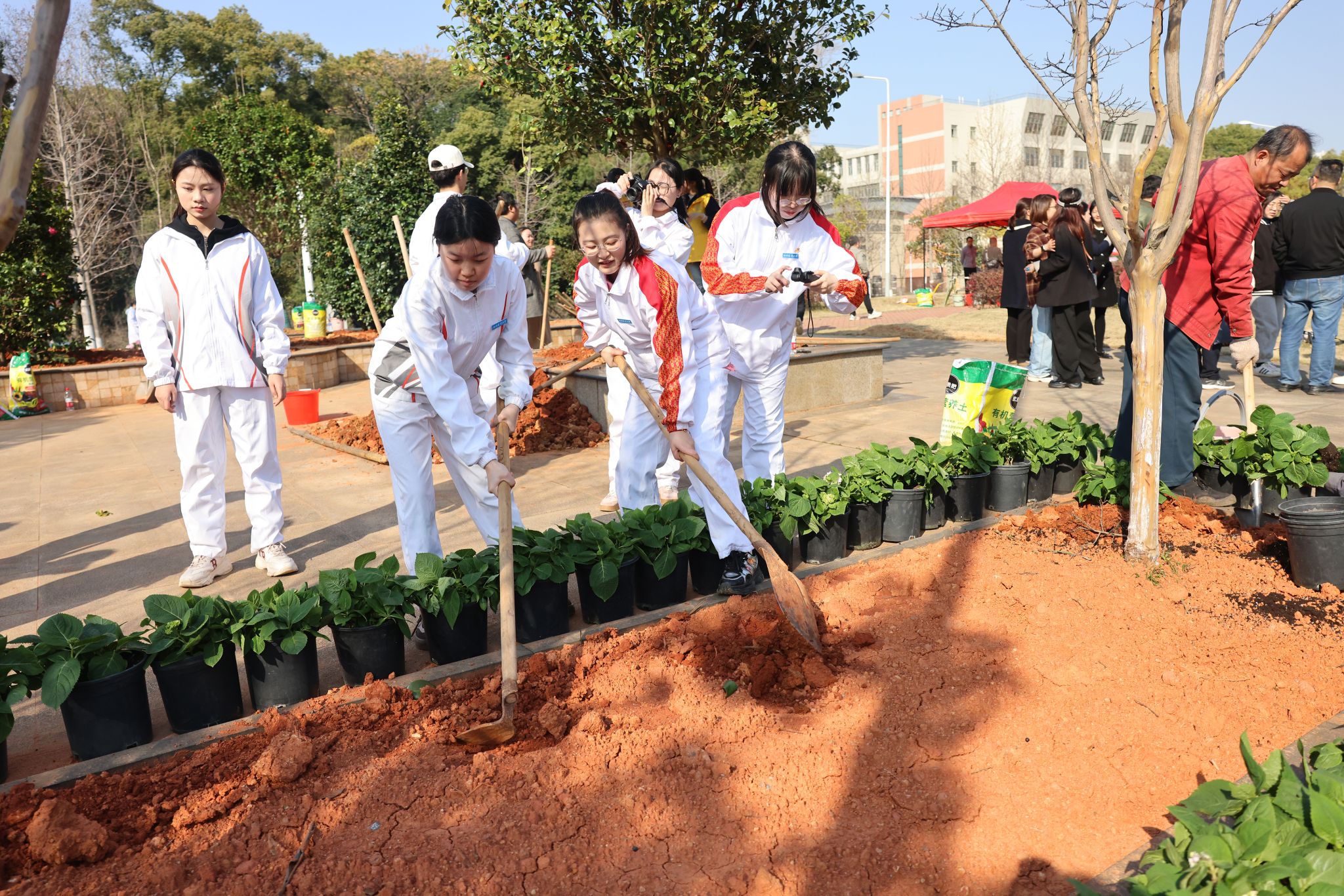 活动期间,志敏大道广场上一片热火朝天的景象,大家配合默契,挥锹铲土、扶苗浇水,共同种下代表着团结的茶花、茶梅树苗。茶花象征着高洁、谦逊,茶梅寓意着坚韧、顽强,一株株新栽的树苗迎风挺立,为初春的校园增添了一抹新绿,也寄托着全体师生对学校未来发展的美好祝愿,它们将与学校一同成长,见证学校更加辉煌的明天。